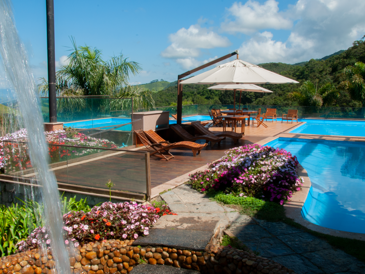 Nossa Casa de Campo de alto padrão é totalmente integrada a natureza. Possui uma linda vista para as montanhas, apresentando um majestoso pôr do sol. Possui 9 quartos, que pode acomodar até 28 pessoas, contando com piscina, jacuzzi, sala de TV, cavalos, cachoeiras, e ainda com o sistema All Inclusive, incluindo no preço, todas as vantagens citadas, cercado por uma paisagem natural de tirar o fôlego.